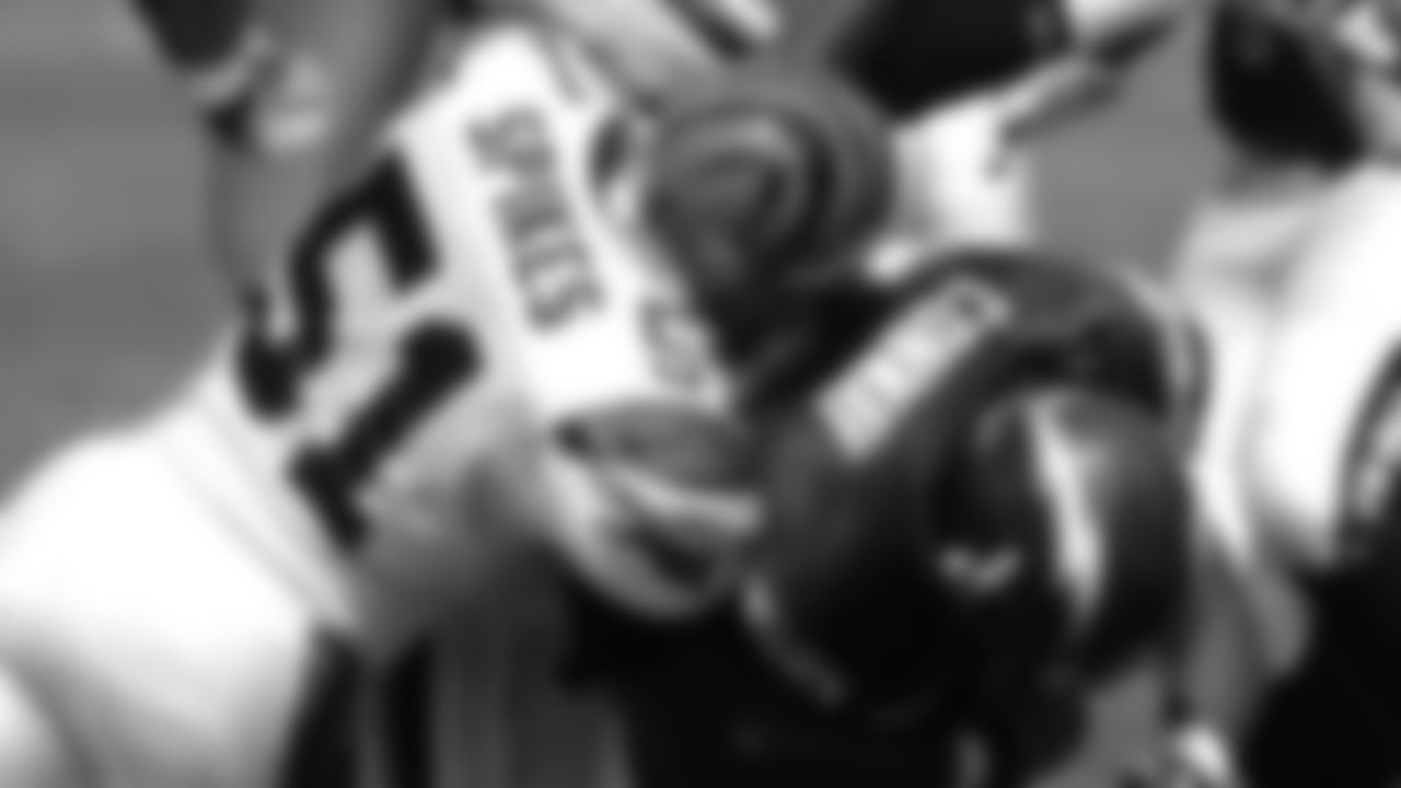 DE Justin Smith rushes the passer in a game against the San Diego Chargers during the 2001 season.